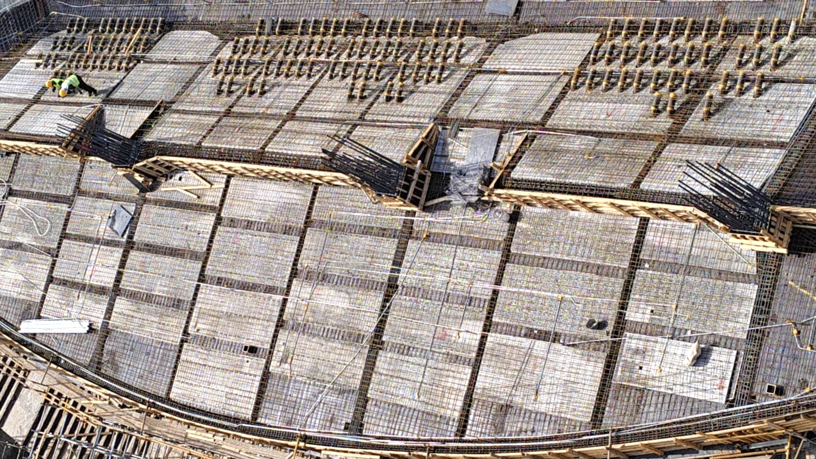 如何在保证强度的同时实现轻盈与节约?项目选择了HRB400E与HRB500E高强钢筋作为“骨骼”。直径≥16毫米的钢筋采用剥肋滚轧直螺纹连接,接头强度达一级,合格率100%。